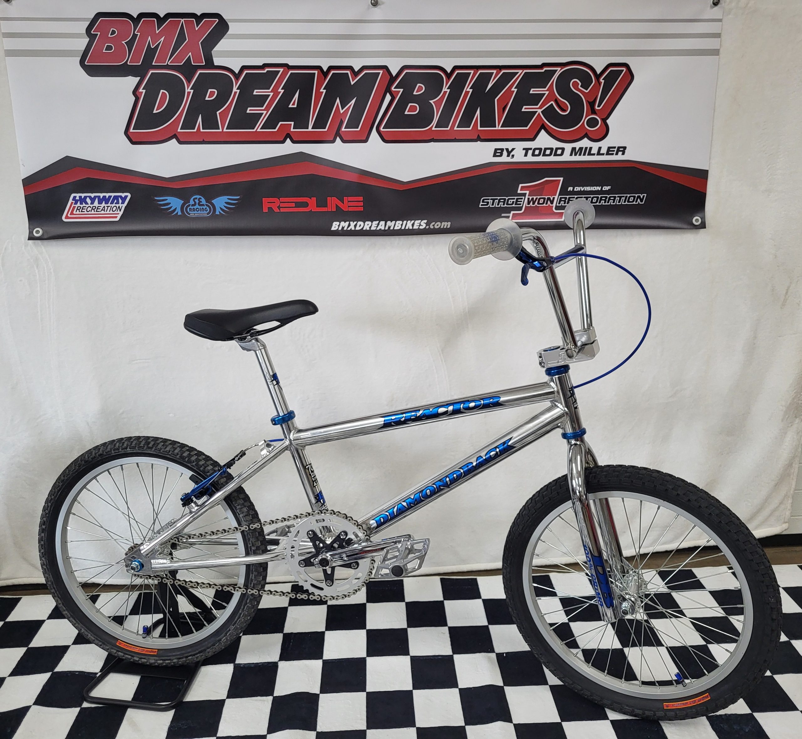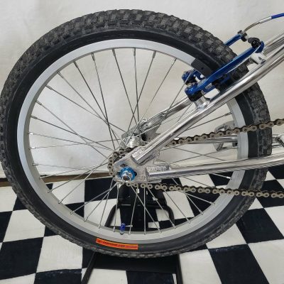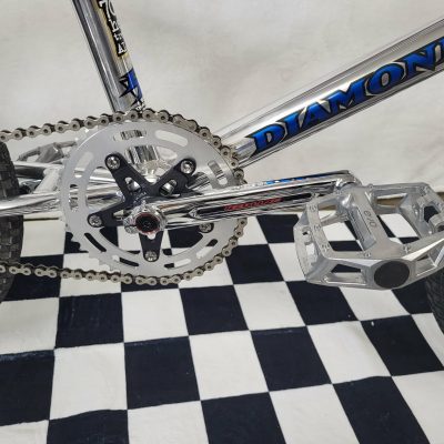 This build is based on the Diamondback Reactor with a few “upgrades” such as Redline Flight Cranks, V-Brakes, AME Grips and a Sealed Bearing Headset. The 1997 Reactor featured a lightweight Aluminum Frame and a Chromoly Fork.