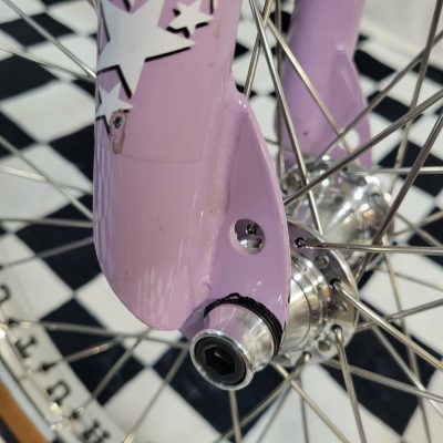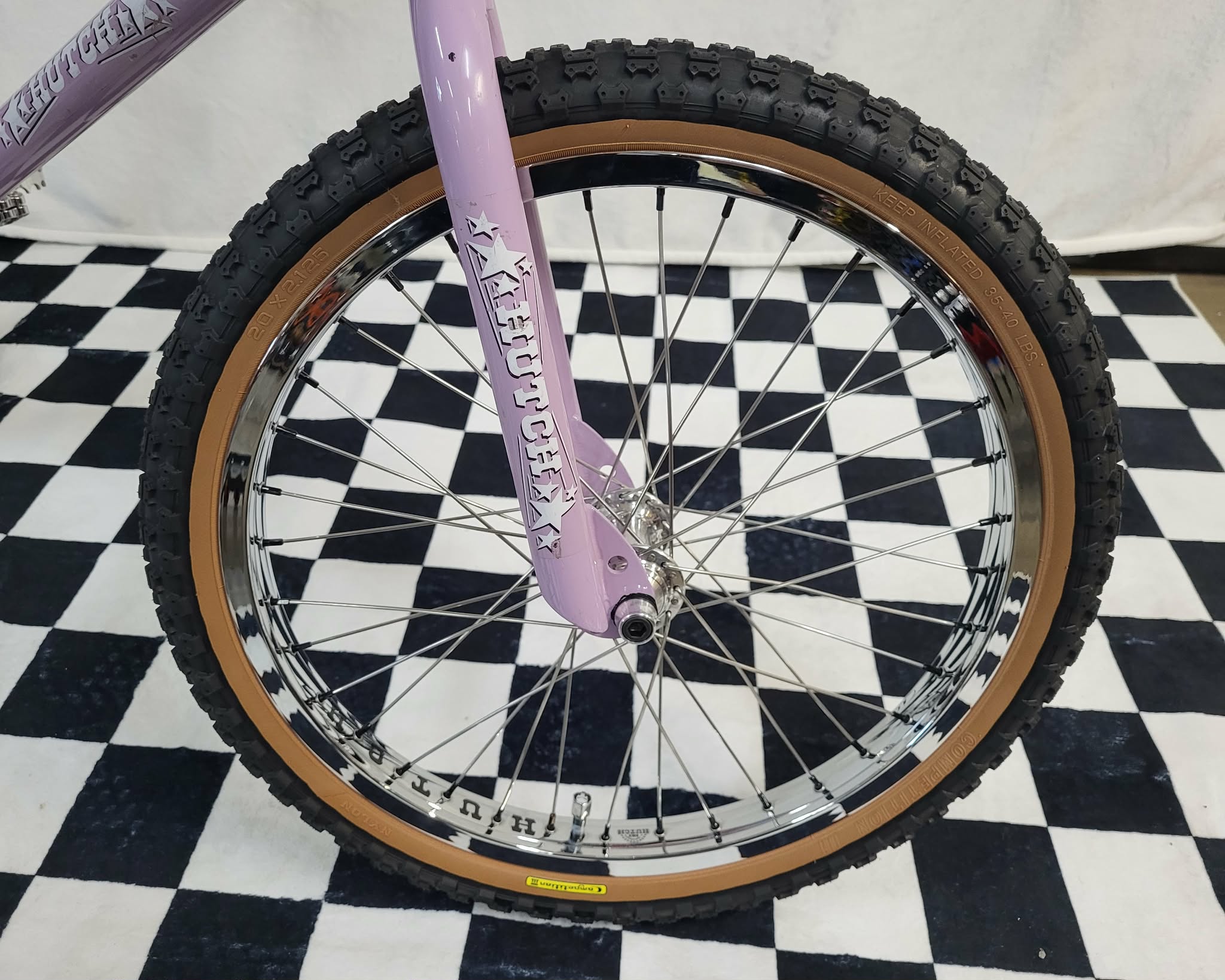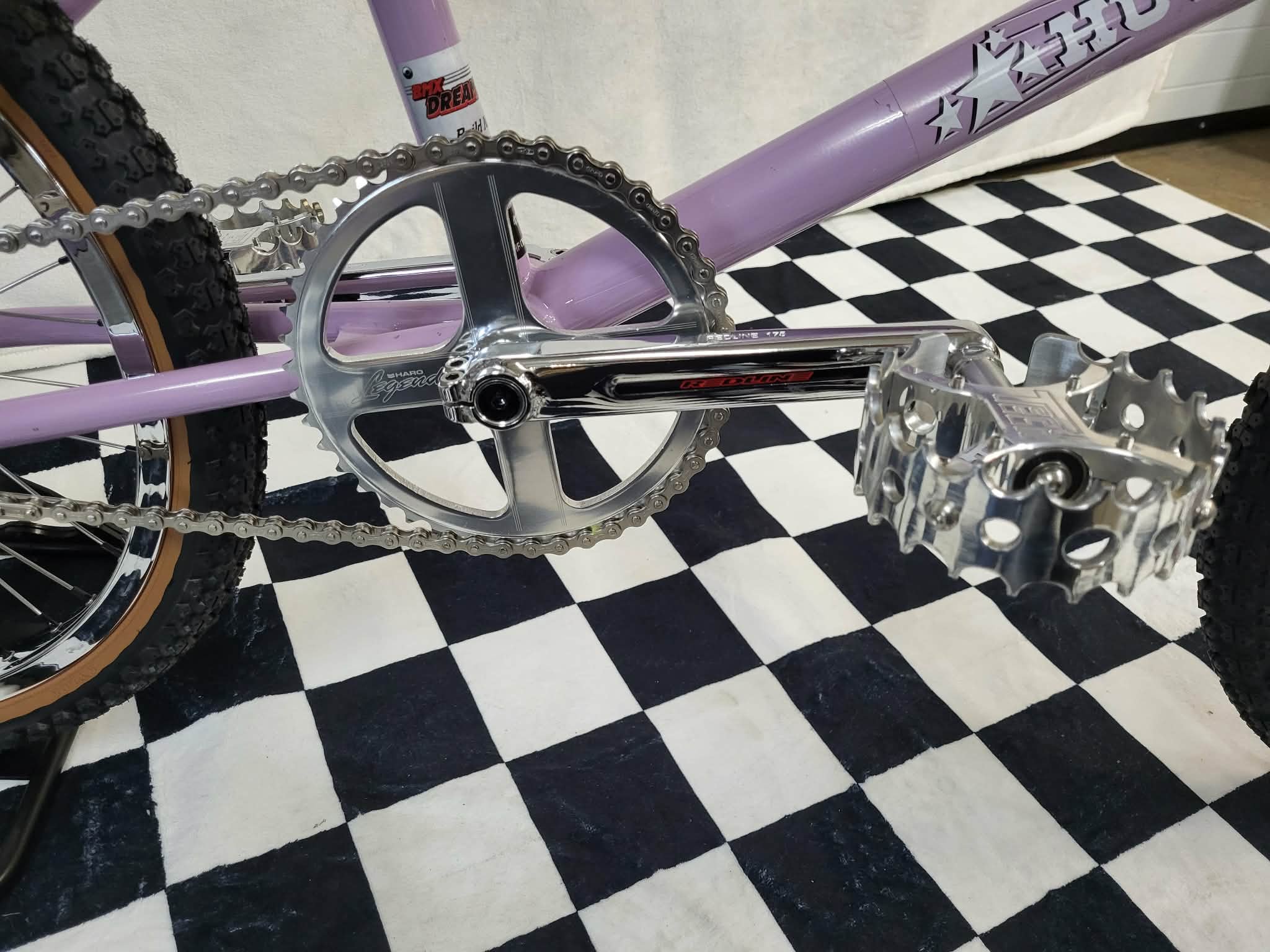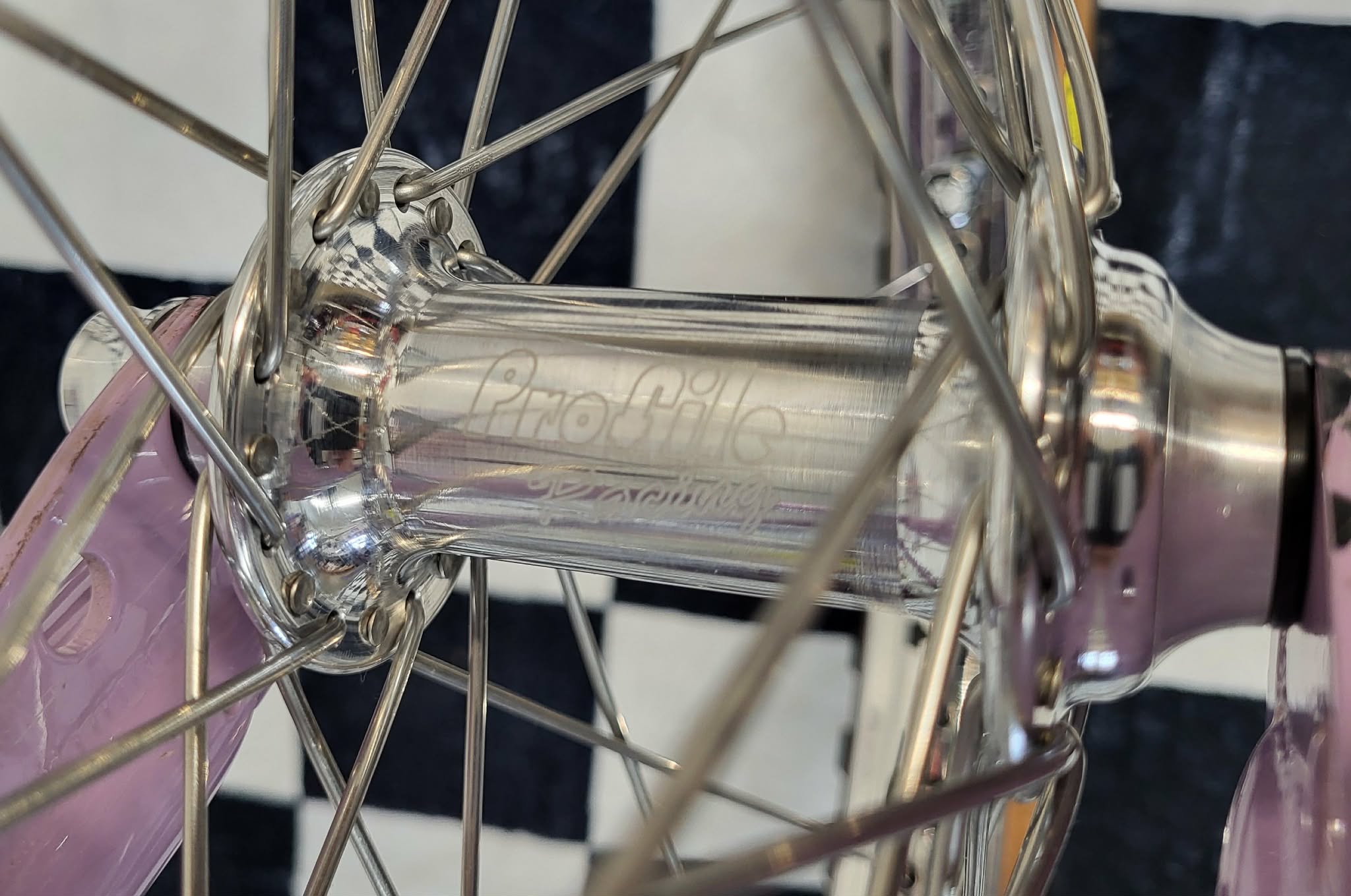 This Bike started as a used 2017 Frame, Fork & Bars that I purchased off of E-Bay. A host of high end parts were added to finish off the build . . . Redline Flight Cranks, Profile Hubs, Hutch Chrome Plated Rims & Shimano DXR Brakes to name a few. All of the parts are brand new, the frame is a 2017 Mike Miranda “Hollywood” model and as mentioned it is “used” and does have some scuffs/scratches that didn’t polish out. Overall it looks great but I do want to stress it is a used Frame & Fork! Also, a big portion of the cost of this build was the custom wheels. If you are interested in this bike but want to save some money, I can put a basic set of wheels on it that would lower the price a bunch!