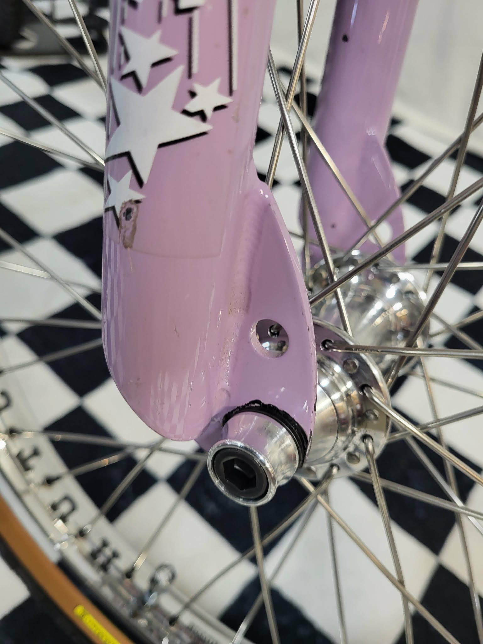 Please Note: As mentioned, this is basically a Brand New bike except the Frame & Fork. Please view the photos closely to see the Frame & Fork Condition. Overall, it’s a great looking bike but there are a few paint “nicks”. See the last photo for the bulk of the paint chips (Fork)