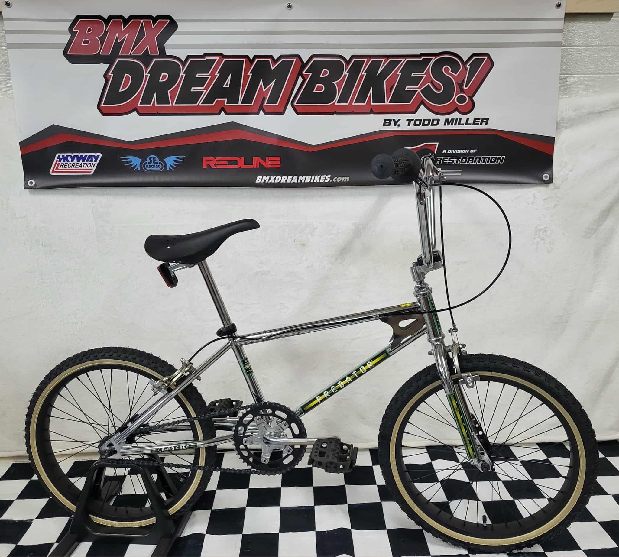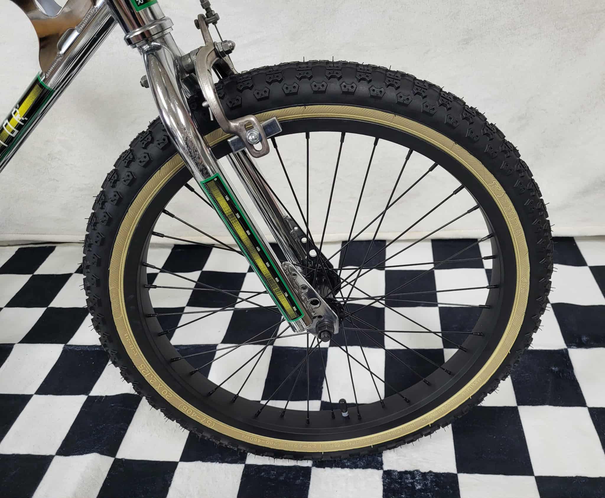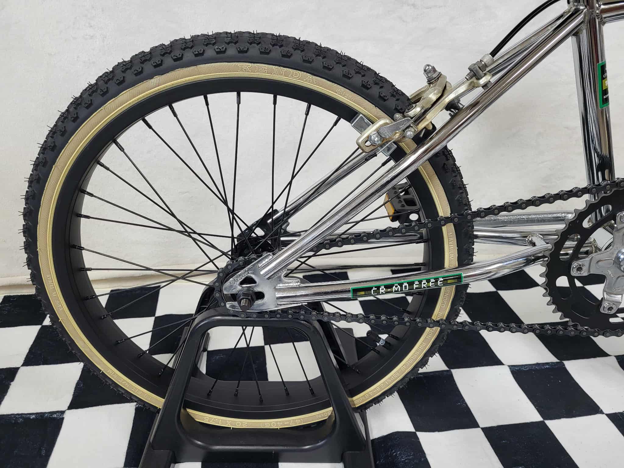 This Bike is ready to go but does have some options! Our Frame set arrived in September (2023) and is # 148 out of 300. This bike currently features Spoked Wheels however I also have a set of the 60th Anniversary Skyway Graphite Tuff Wheels set aside for it along with a pair of Bullseye / Skyway Pedals. (Both of these are options) It also features a very rare set of 50th Anniversary "Redline by Kastan" Flight Cranks, Sprocket and Techmatic Bottom Bracket Set. If this is a bike you're interested in give me a call and we can discuss what options you prefer. The current price is for the Spoked Wheels and MKS Graphite Pedals.Frame | Skyway Gold Plated – 60th Anniversary |