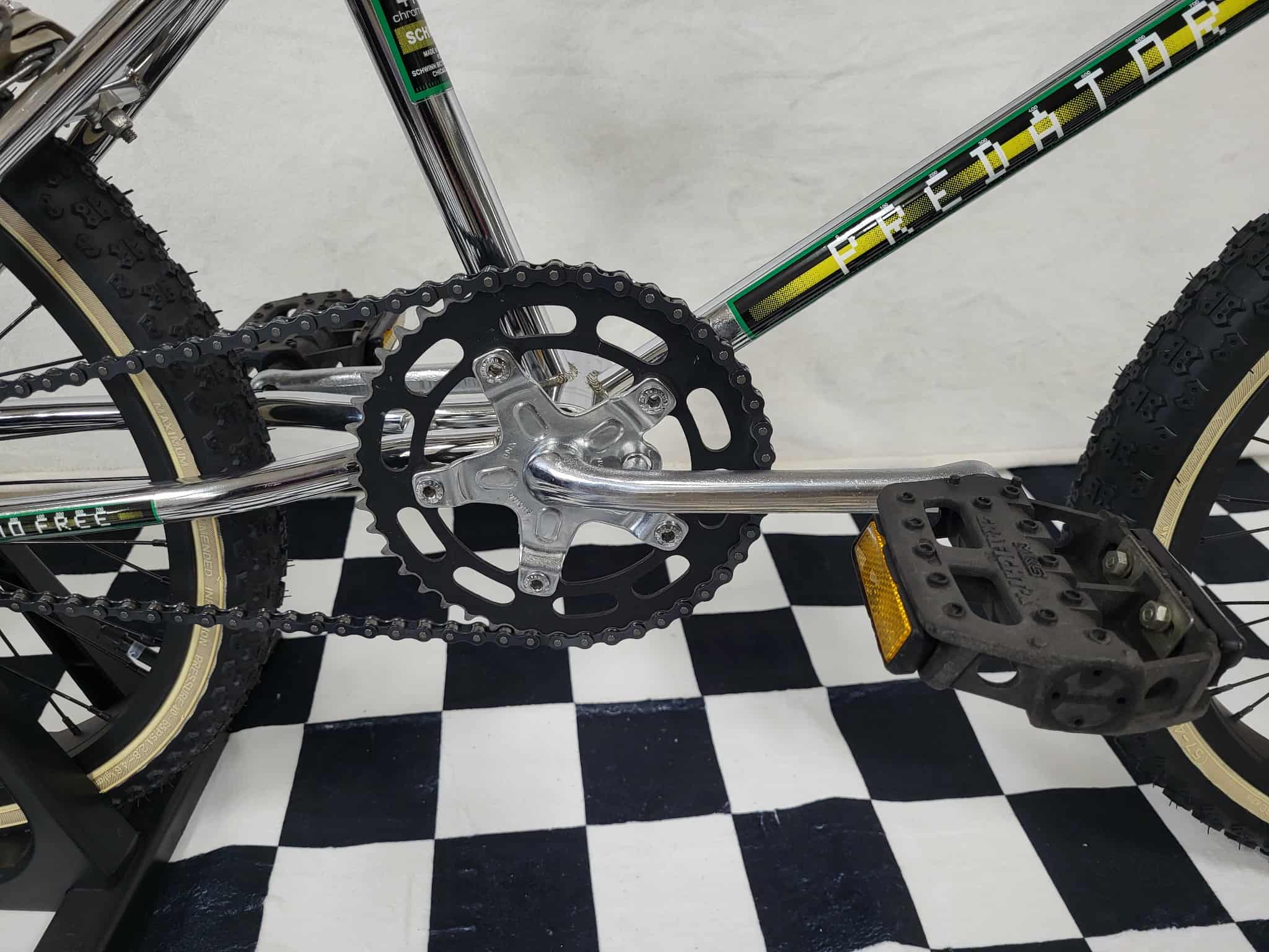 This is a great survivor! I simply went through and cleaned it up a bit. It did need new Wheels, Chain, Grips and a Decal Kit. I completely disassembled the entire bike, cleaned and re-greased everything! As you can see in the photos the Chrome is in great shape (inside of the frame & fork are also in great shape) The Rest of the parts appear to be original including a super nice Sugino Spider (These alone sell for big bucks on E-Bay)