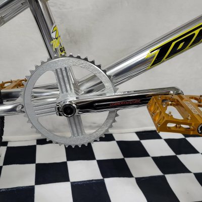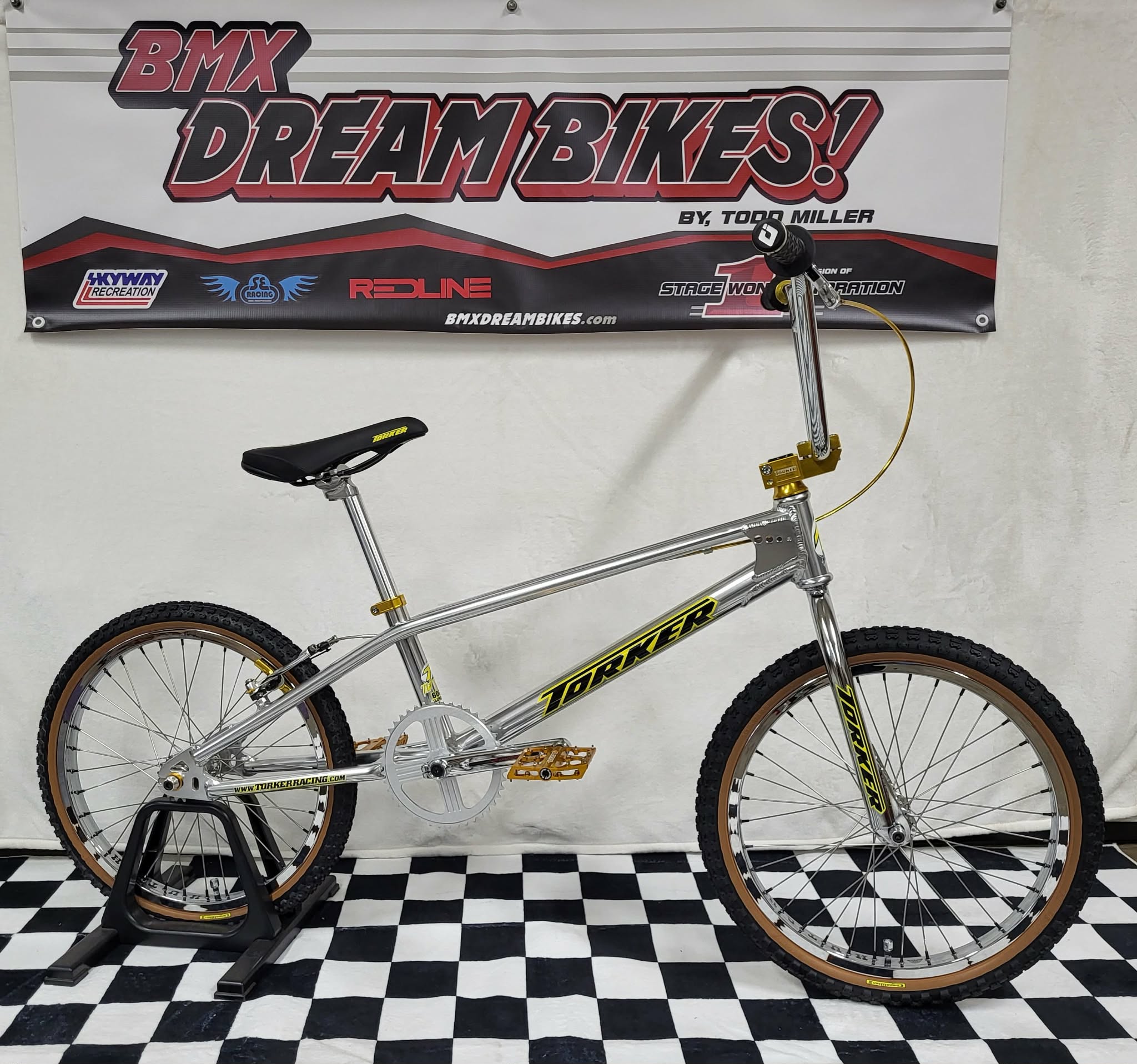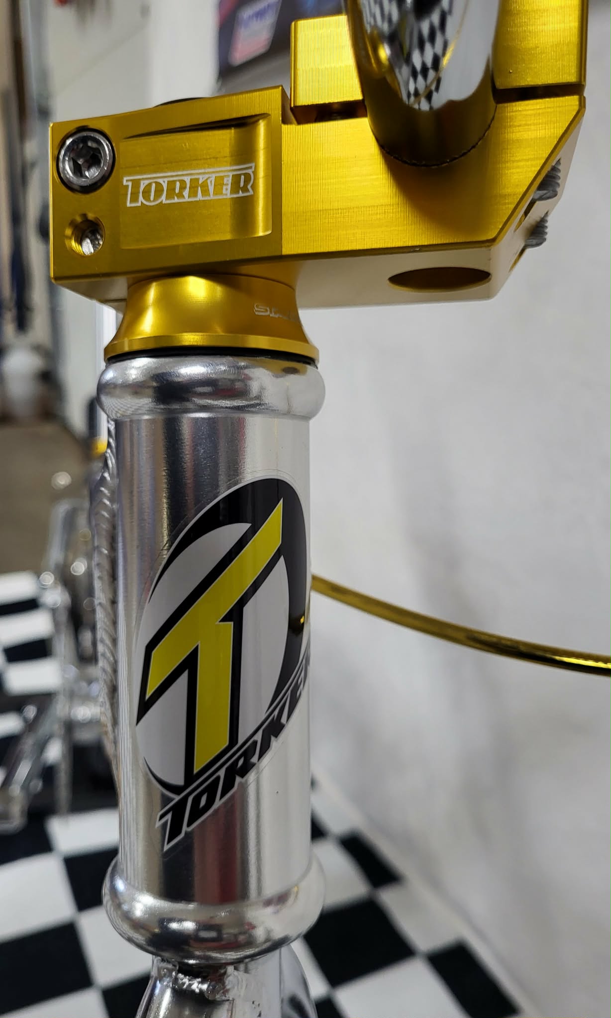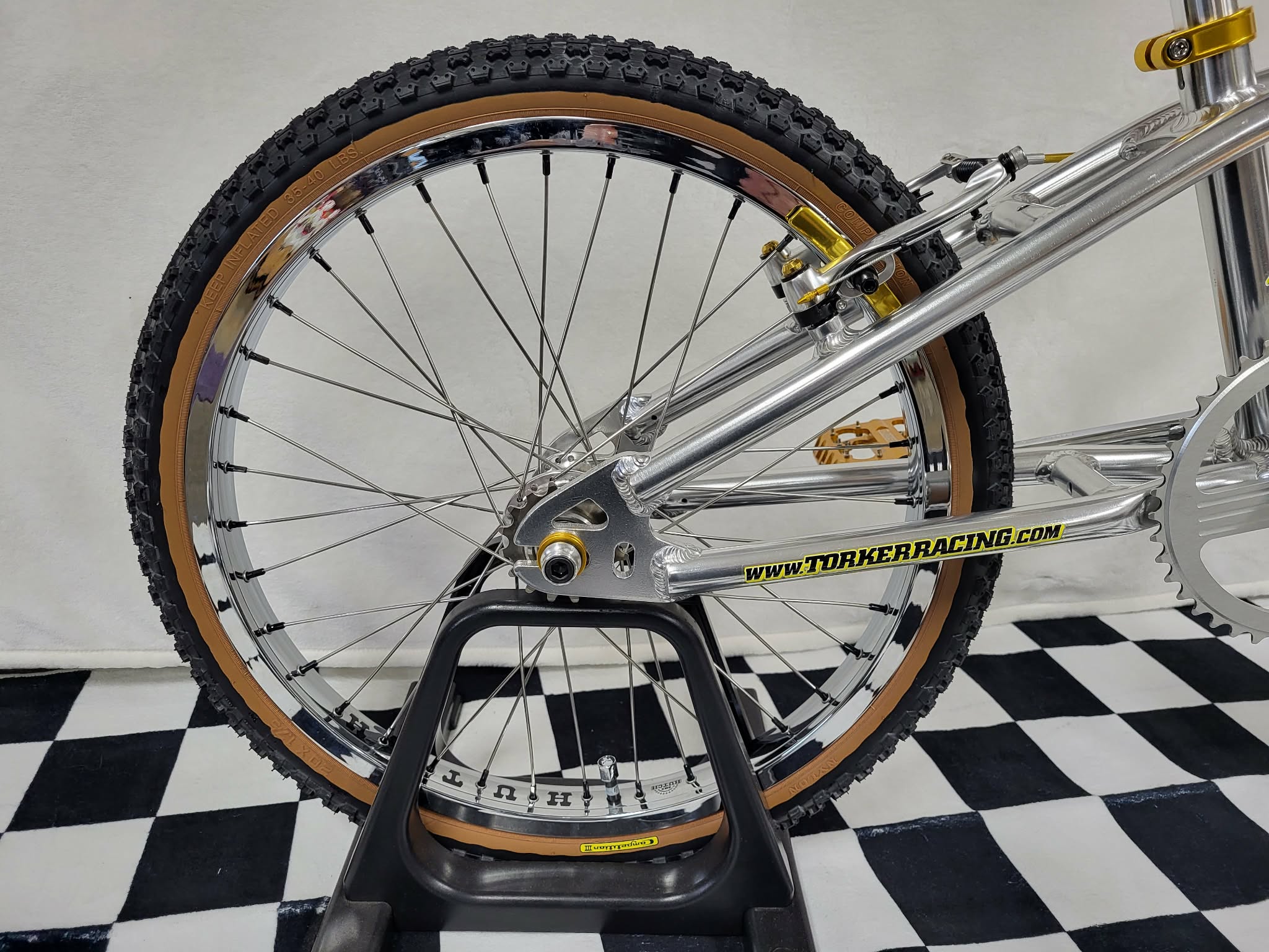 We have a few Torker Projects in the works. These are the Brand New Torker’s that are being made by Bill Ryan (owner of Supercross BMX Bikes) These Frames feature Modern Race geometry so you can race them if you want or use them as a cool bike to cruise around on. This particular build is based on the Polished Diesel Aluminum Frame. This bike is ready to race, cruise, show or display in your Man Cave! This frame is only 1 of 25 made in Polished Aluminum. This is an XXL frame so a good option for taller riders.