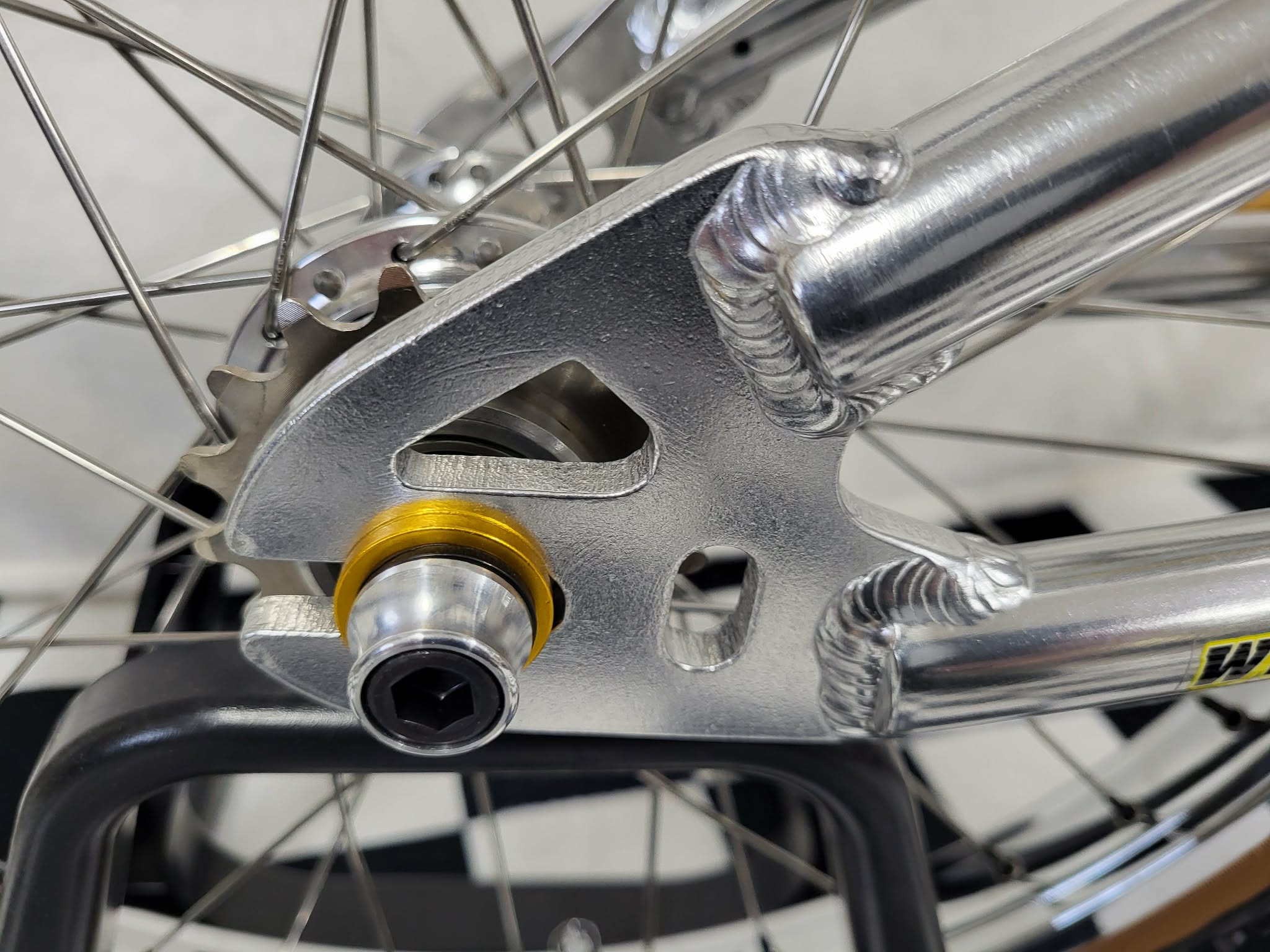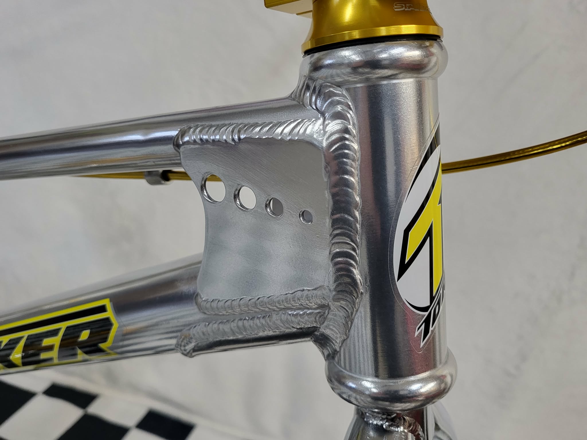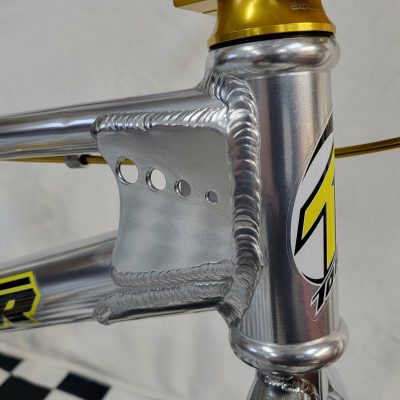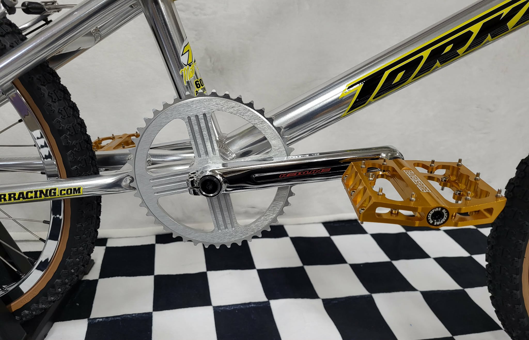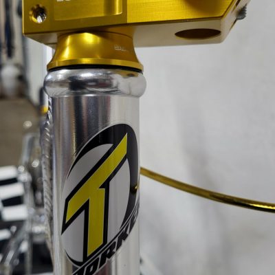 We have a few Torker Projects in the works. These are the Brand New Torker’s that are being made by Bill Ryan (owner of Supercross BMX Bikes) These Frames feature Modern Race geometry so you can race them if you want or use them as a cool bike to cruise around on. This particular build is based on the Polished Diesel Aluminum Frame. This bike is ready to race, cruise, show or display in your Man Cave! This frame is only 1 of 25 made in Polished Aluminum. This is an XXL frame so a good option for taller riders.