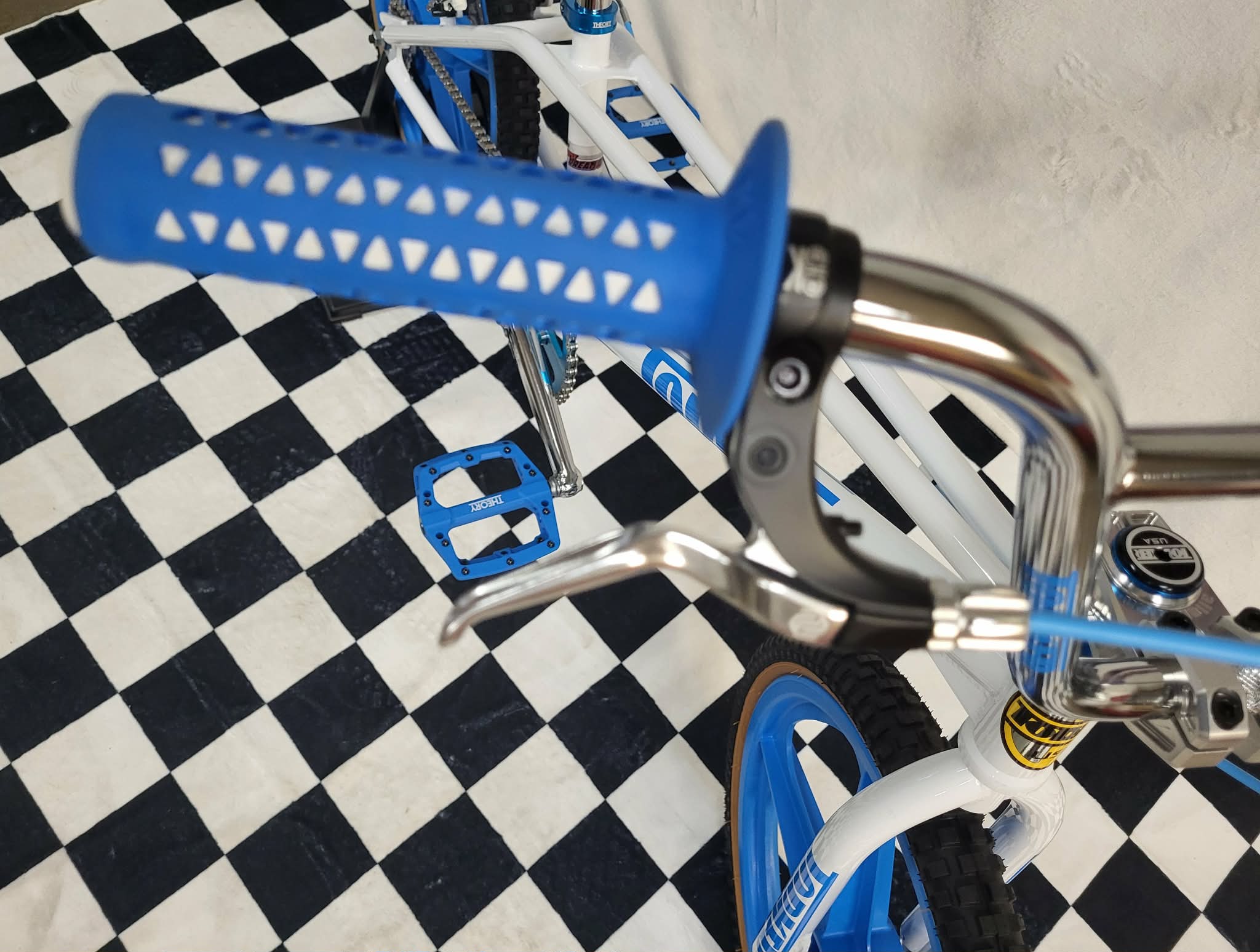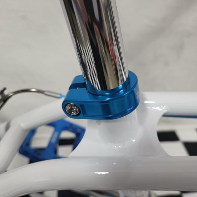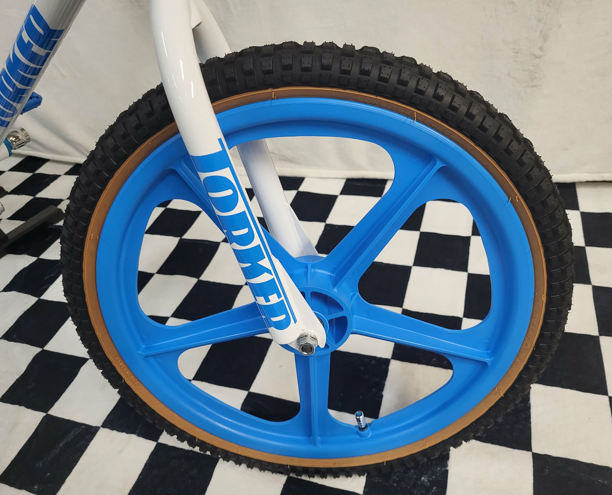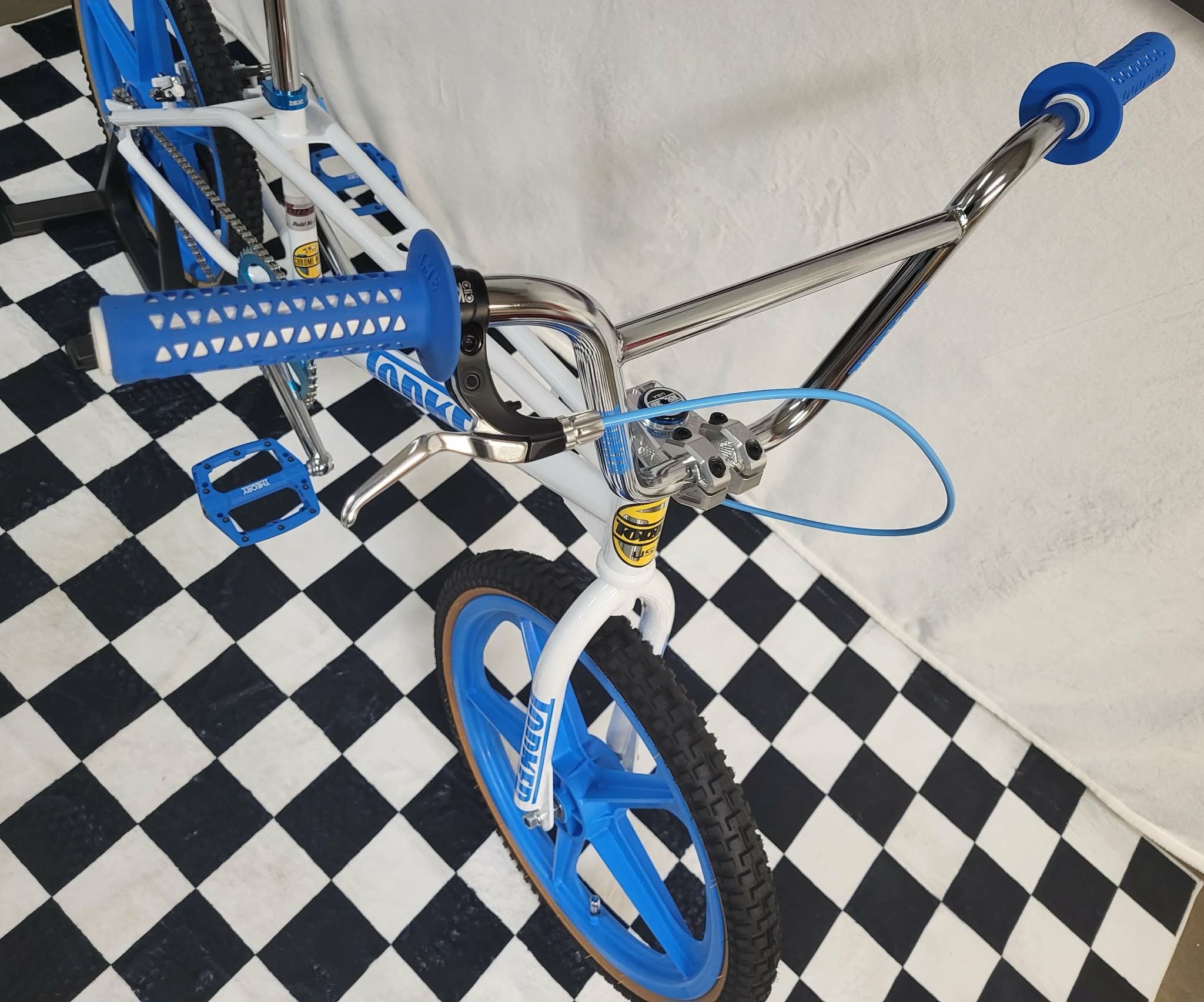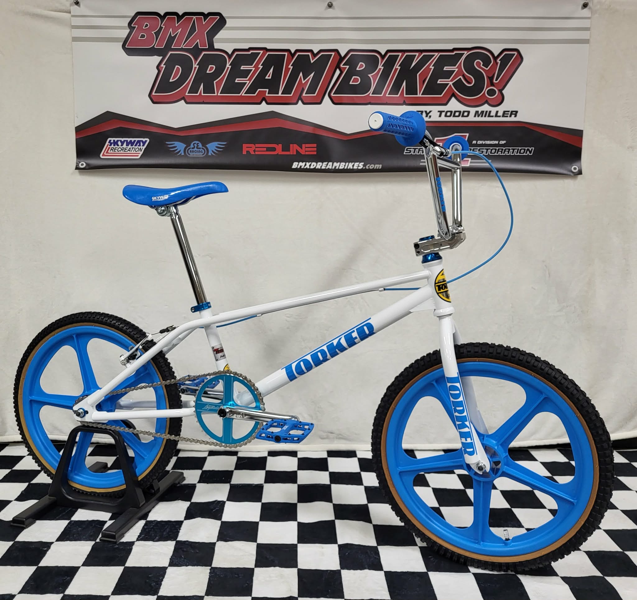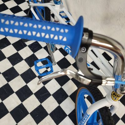 We have a few Torker Projects in the works. These are the Brand New Torker’s that are being made by Bill Ryan (owner of Supercross BMX Bikes) These Frames feature Modern Race geometry so you can race them if you want or use them as a cool bike to cruise around on. This particular build will be based on the White Pro-X frame (XXL) and will feature Maui Blue Skyways. This will basically be a bike you can comfortably cruise around on but if you wanted to take it to a BMX Track and race it, you could! This frame is only 1 of 15 made in White and as mentioned will feature some Maui Blue Components. This should be a cool bike and 1 of a kind with this color combo! We also have some custom Blue Frame & Fork Decals that came from Australia!